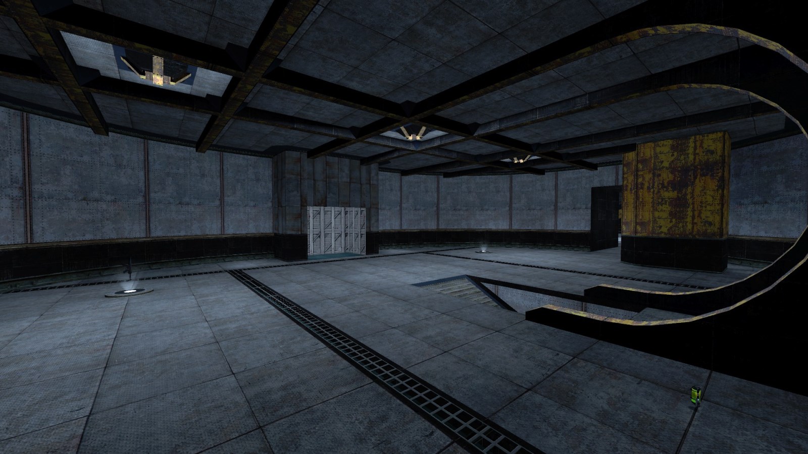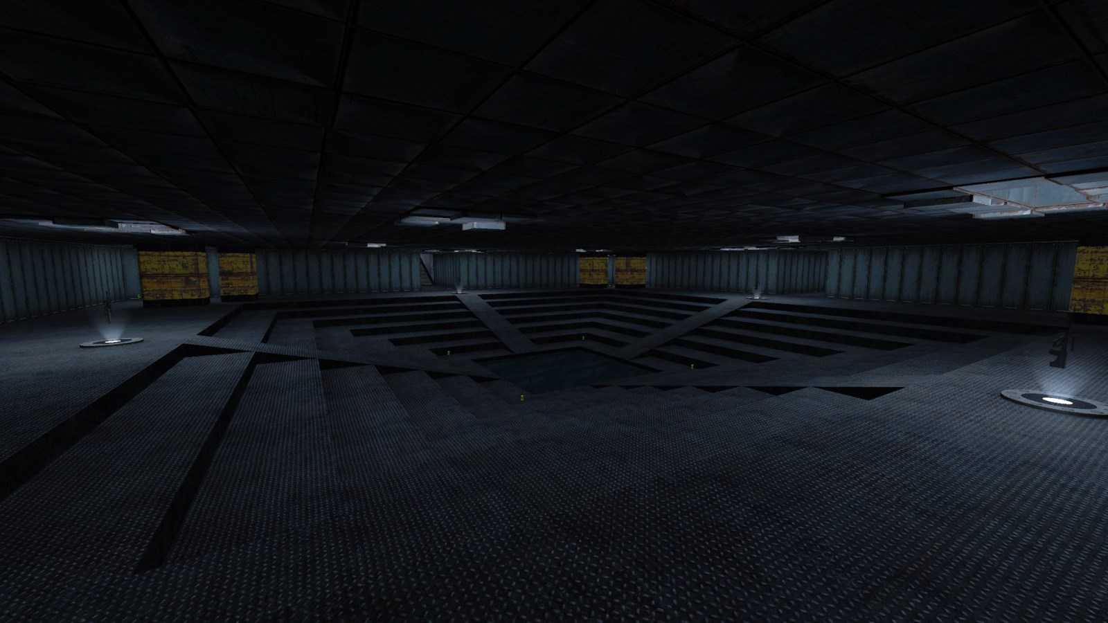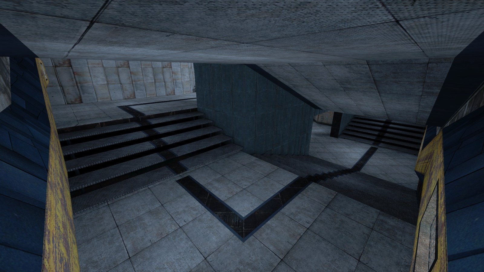 The map is a multilevel symmetrical indoor map. Spawn points are scattered all over the map. Guns are placed across the map. Health kits and armor in also in the map. In the classic deathmatch style you run around the map, killing people, healing, getting guns/ammo and getting armor. I have attempted to create a map so this can be done with the Source feel.